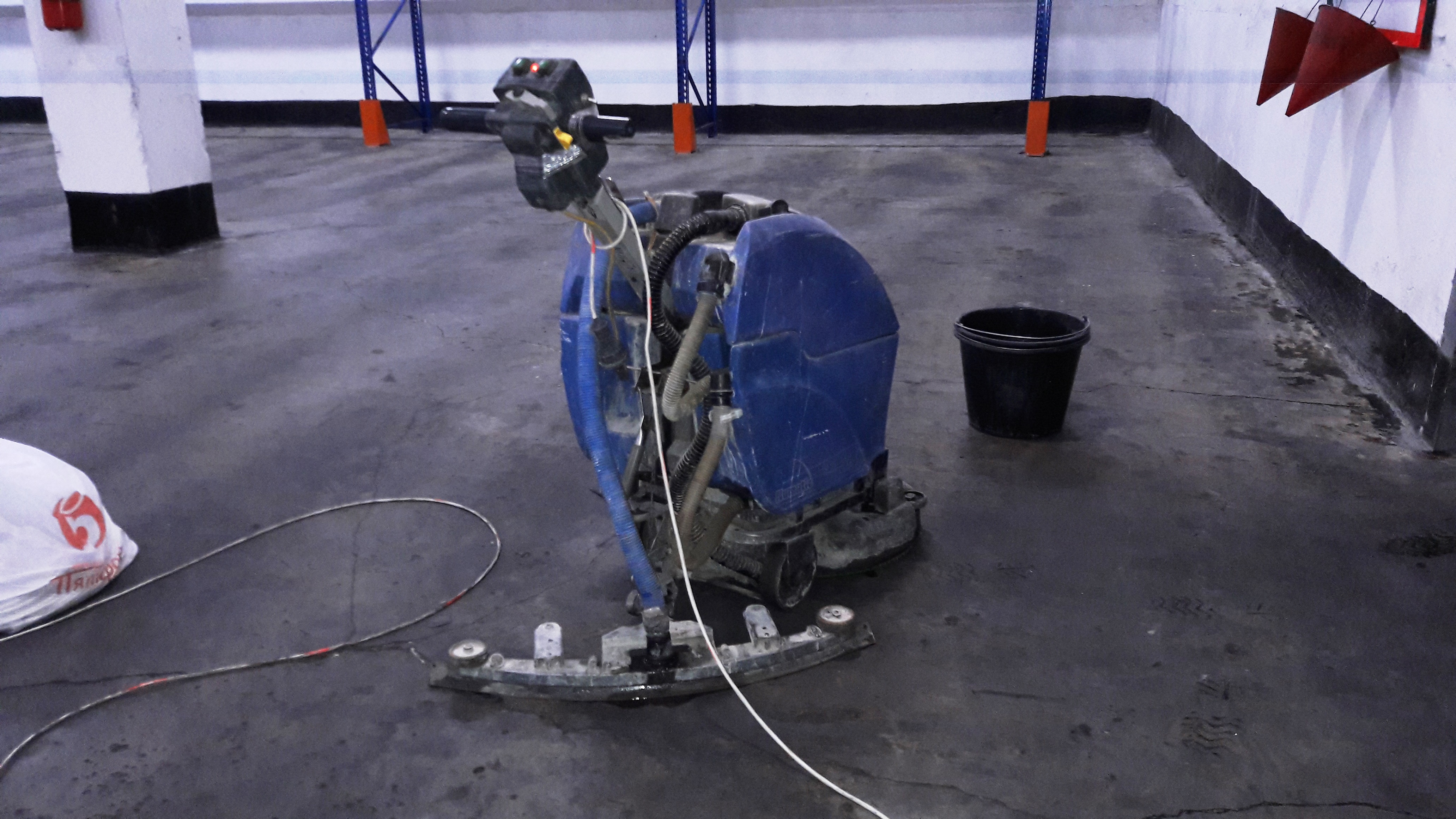 Произведена уборка поверхности бетонного пола складского комплекса площадью 1 200 кв.м. в г. Мытищи.