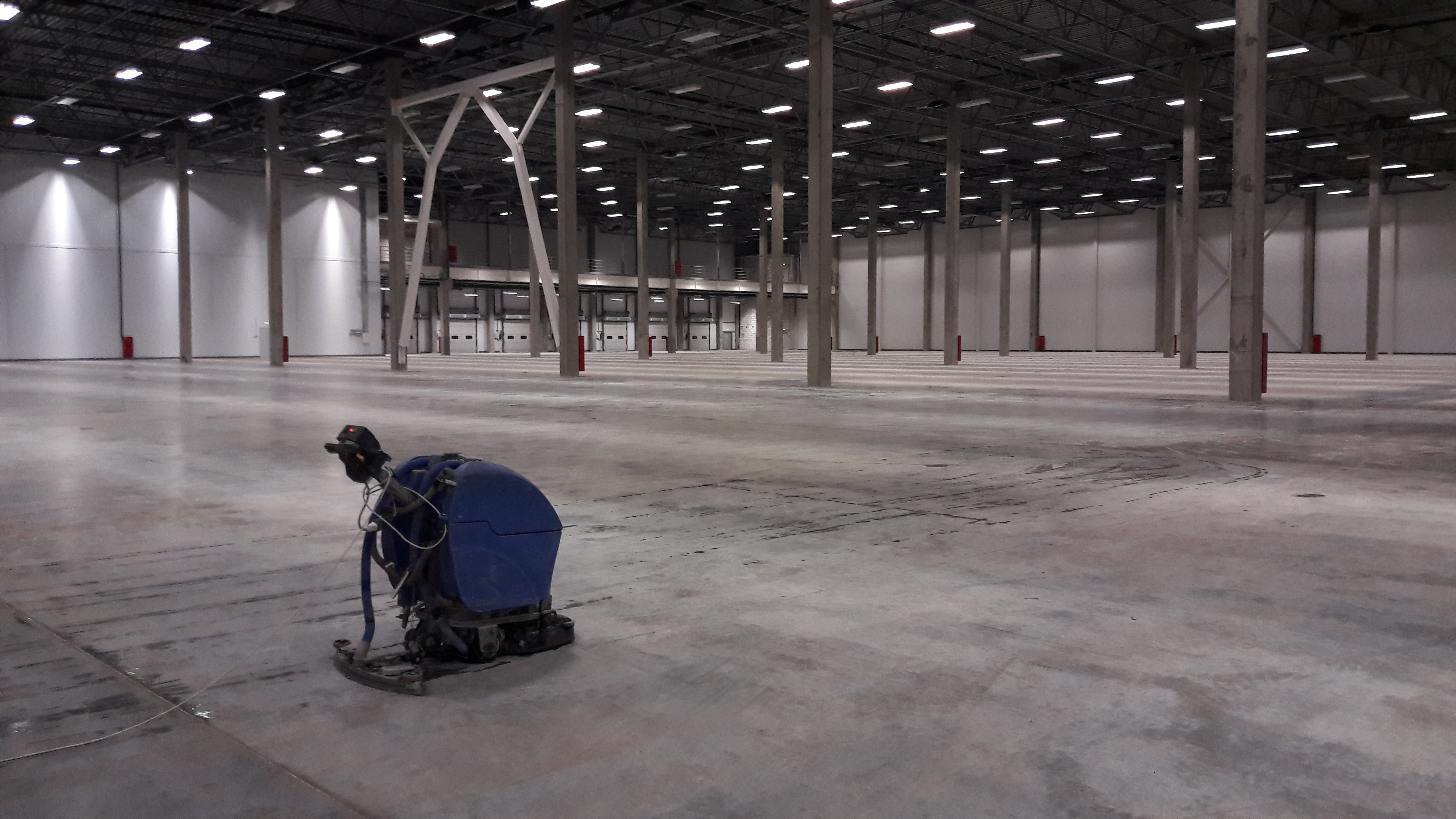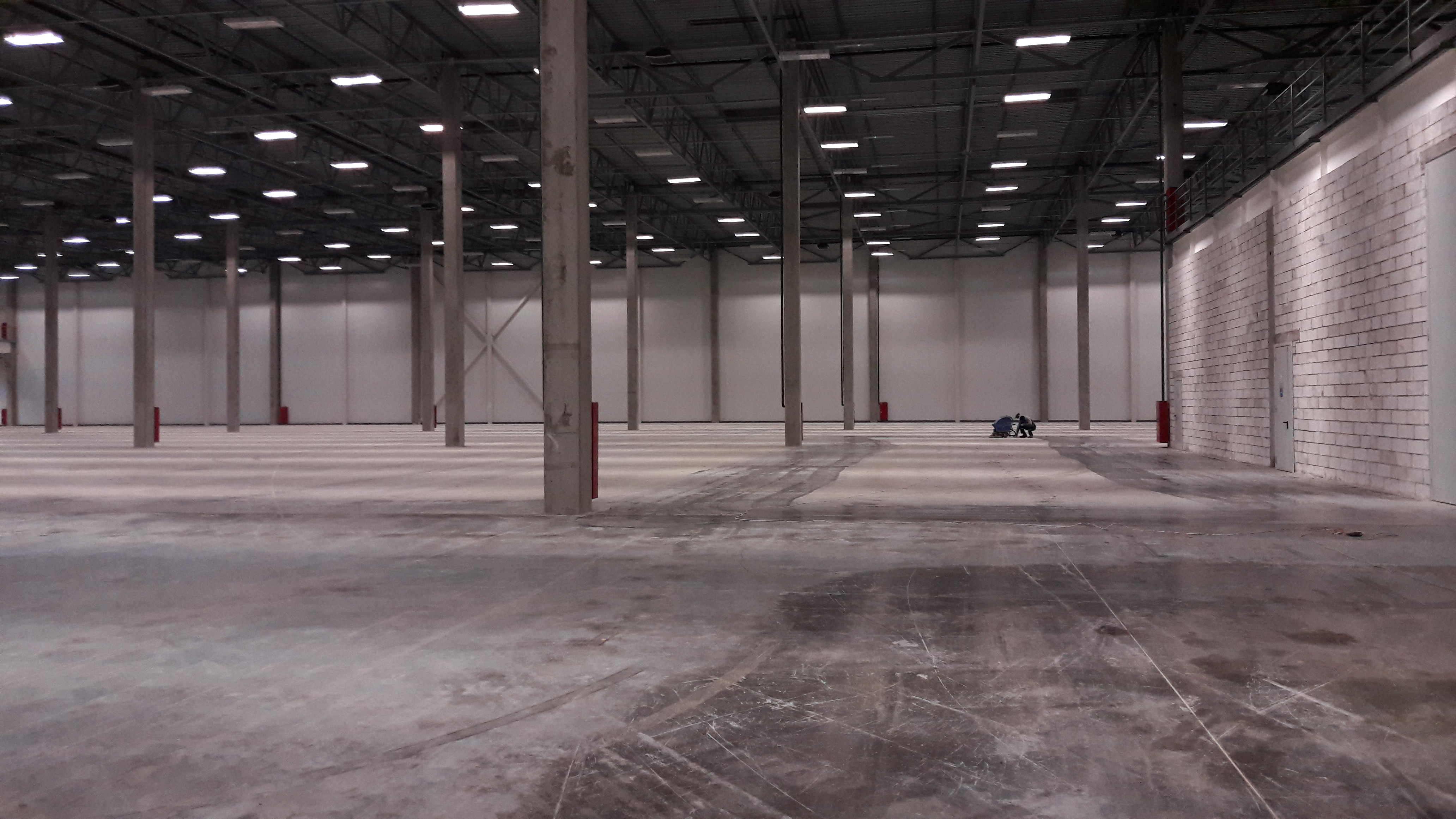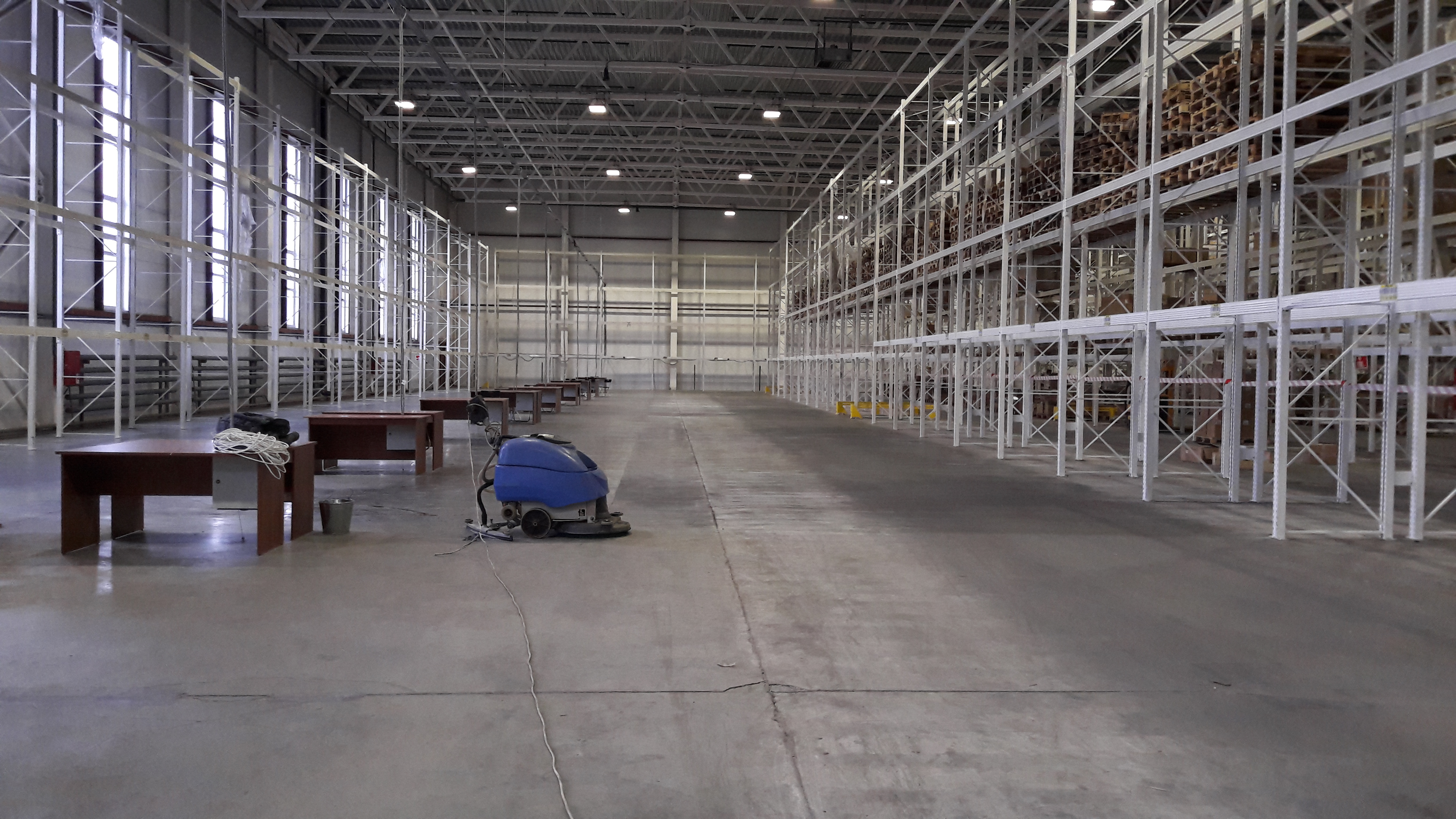Произведена уборка поверхности бетонного пола складского помещения площадью 1 100 кв.м. в г. Щербинка.