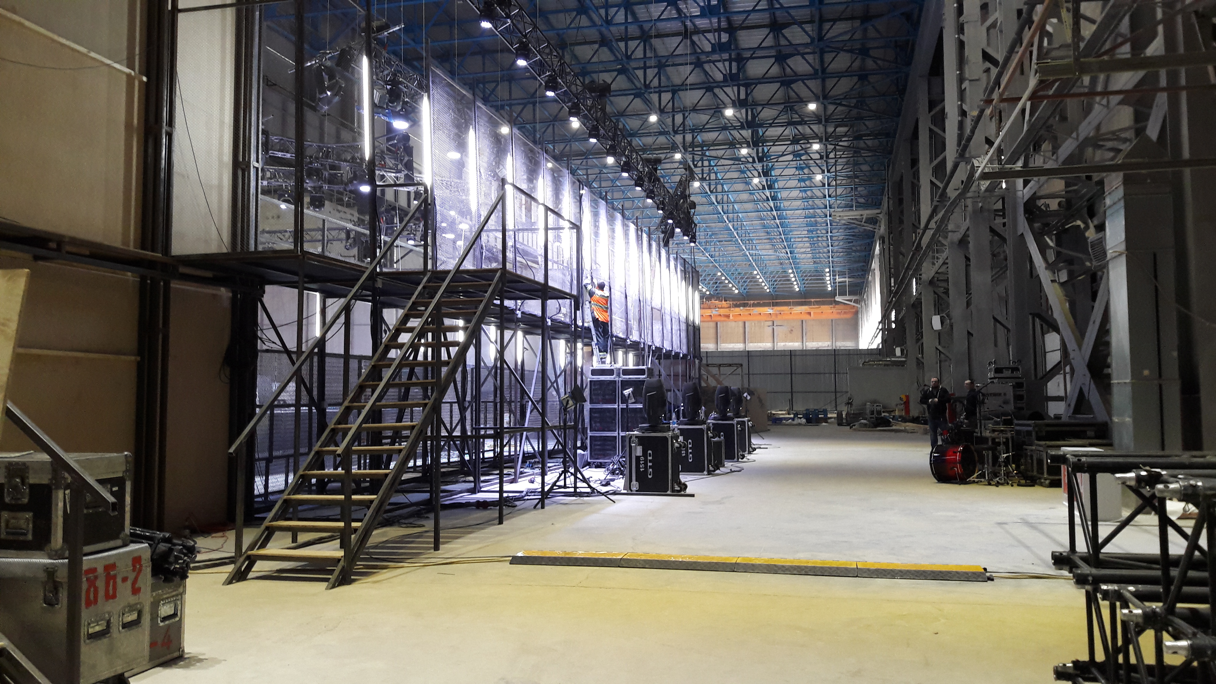 Площадь - 3500 м2, высота потолков - 13,5 м.