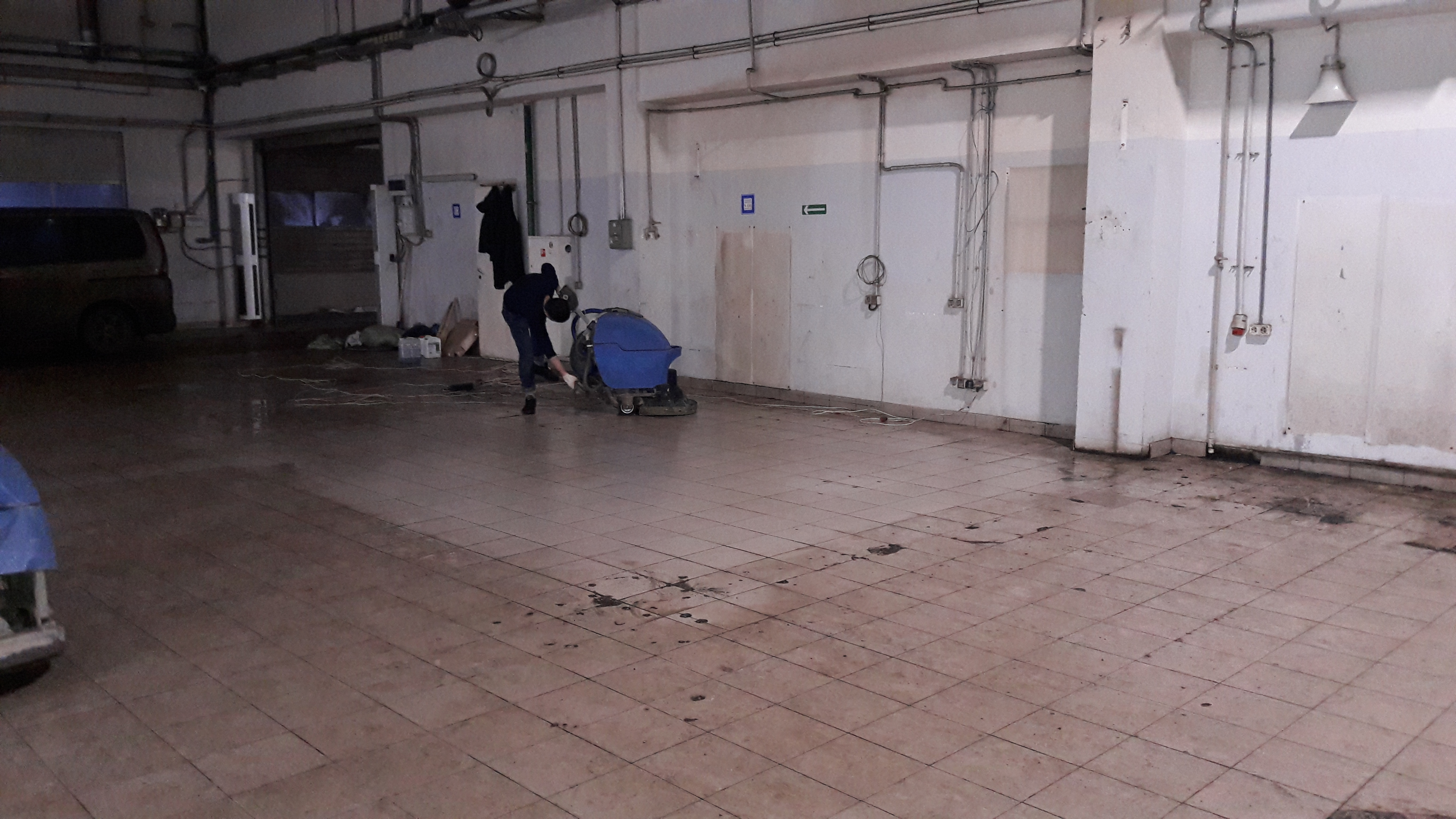 Проведено мытье пола автосервиса площадью 900 кв.м. в г. Москва.