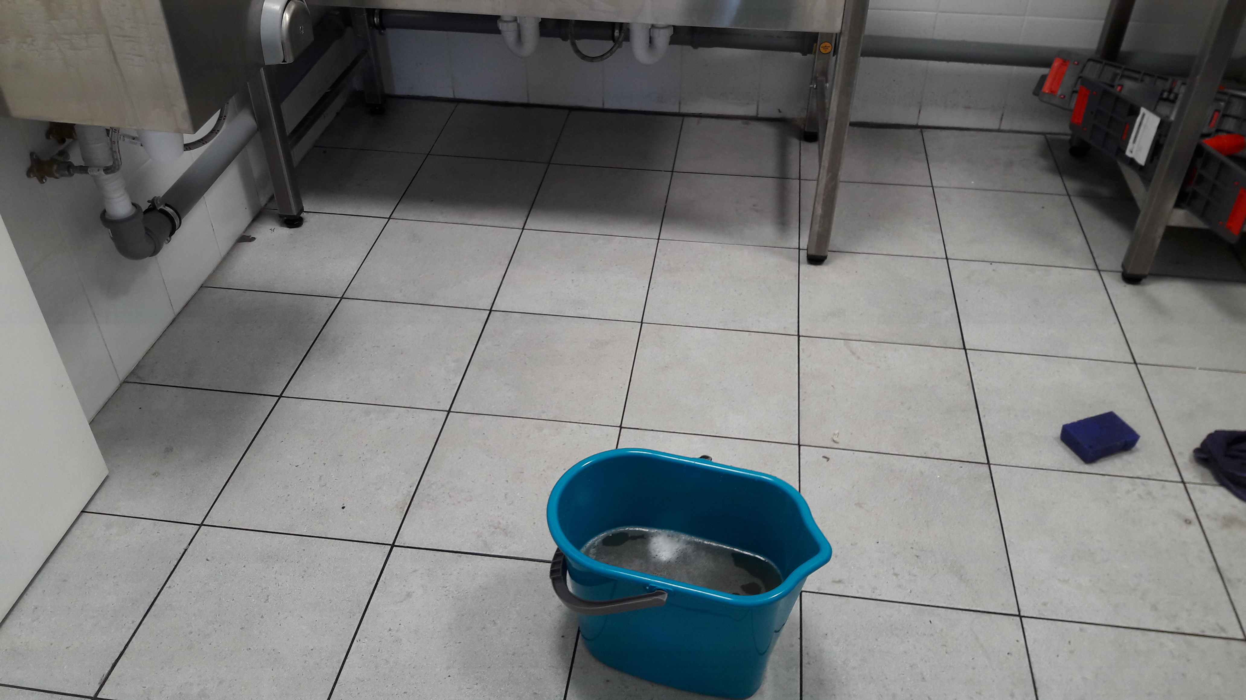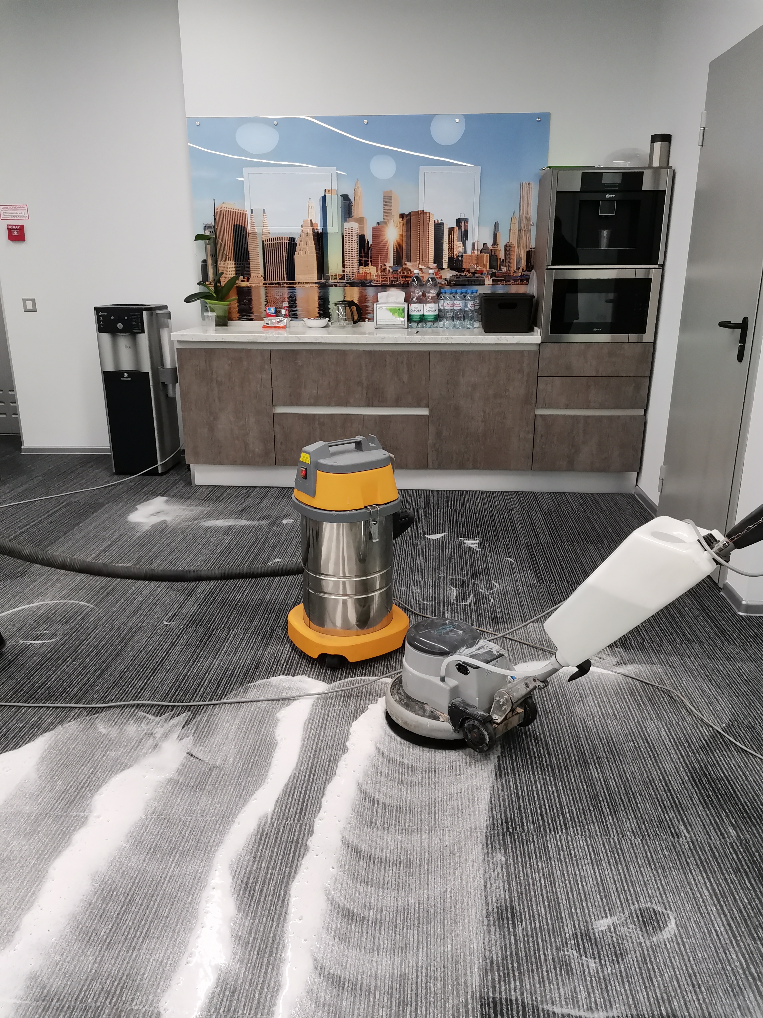 Мытье пола производилось с использованием профессиональных моющих средств и сетевой поломоечной машины с абразивными размывочными кругами (ПАДами).