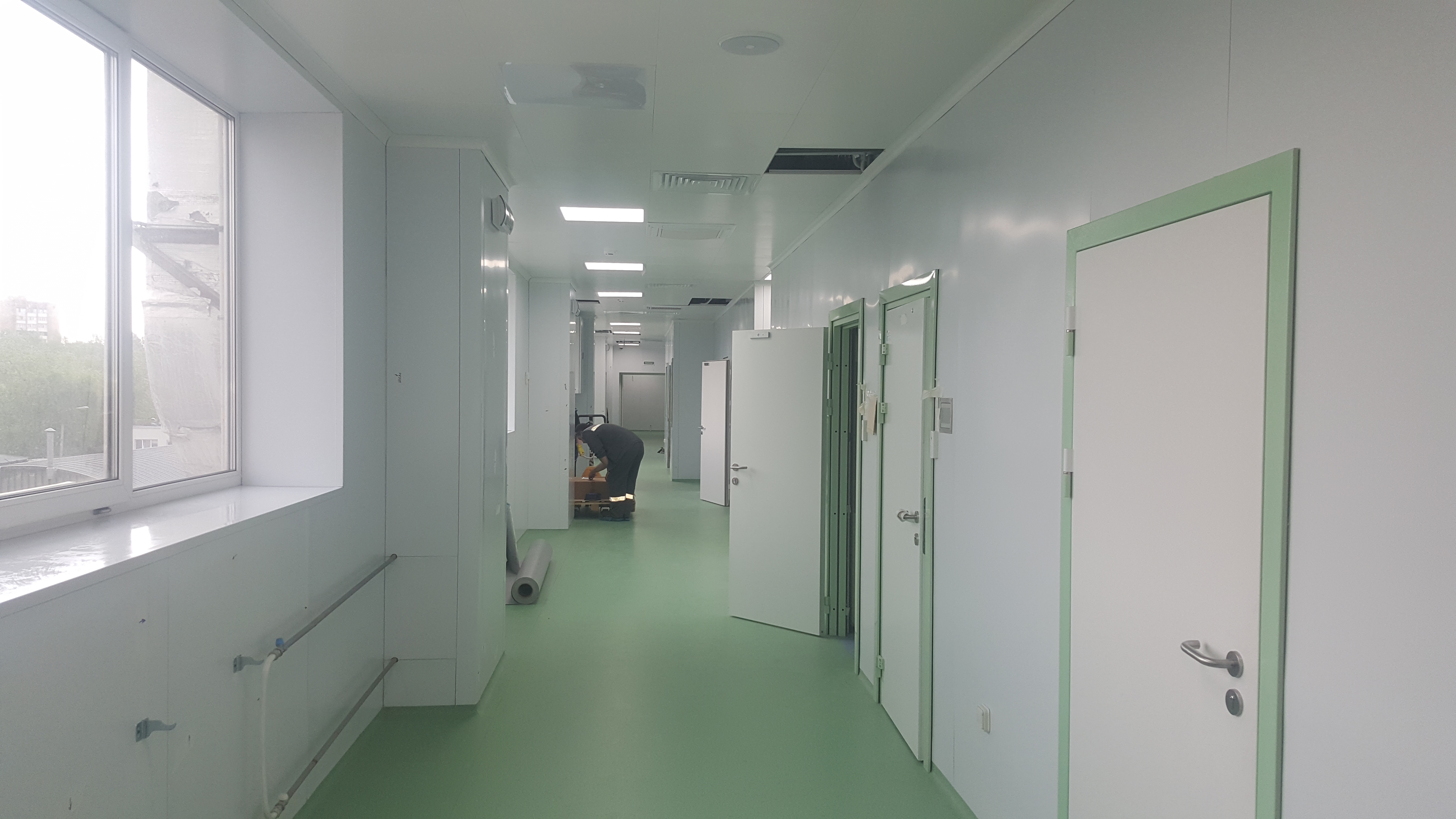 Произведена генеральная послестроительная уборка: запотолочная зона, полы, стены, инженерные коммуникации, "чистые помещения", технические помещения