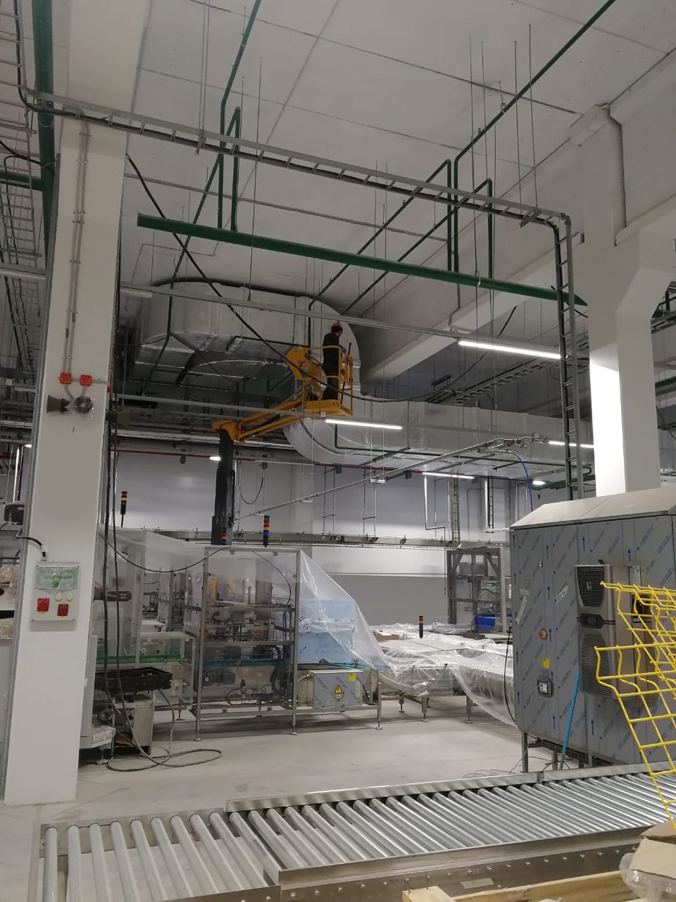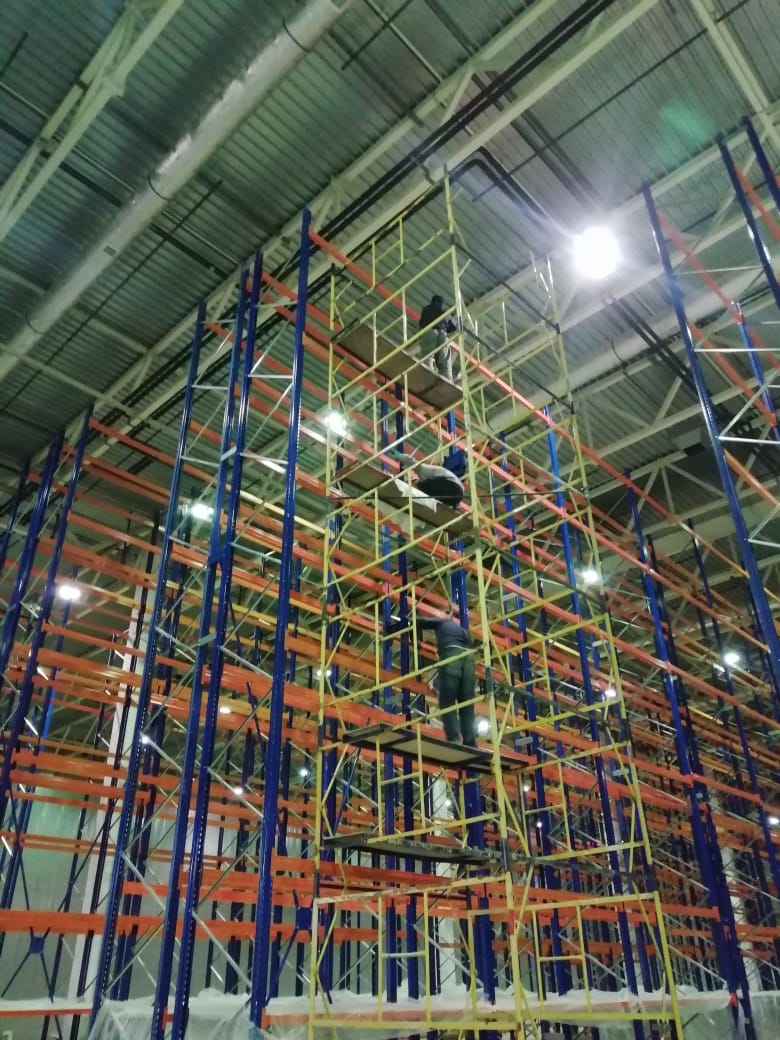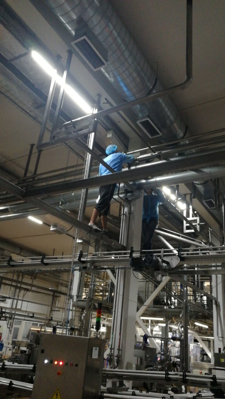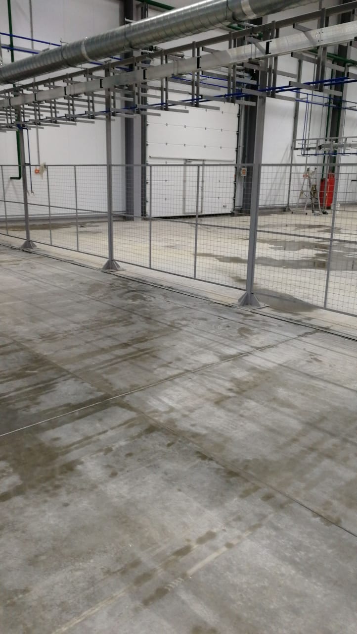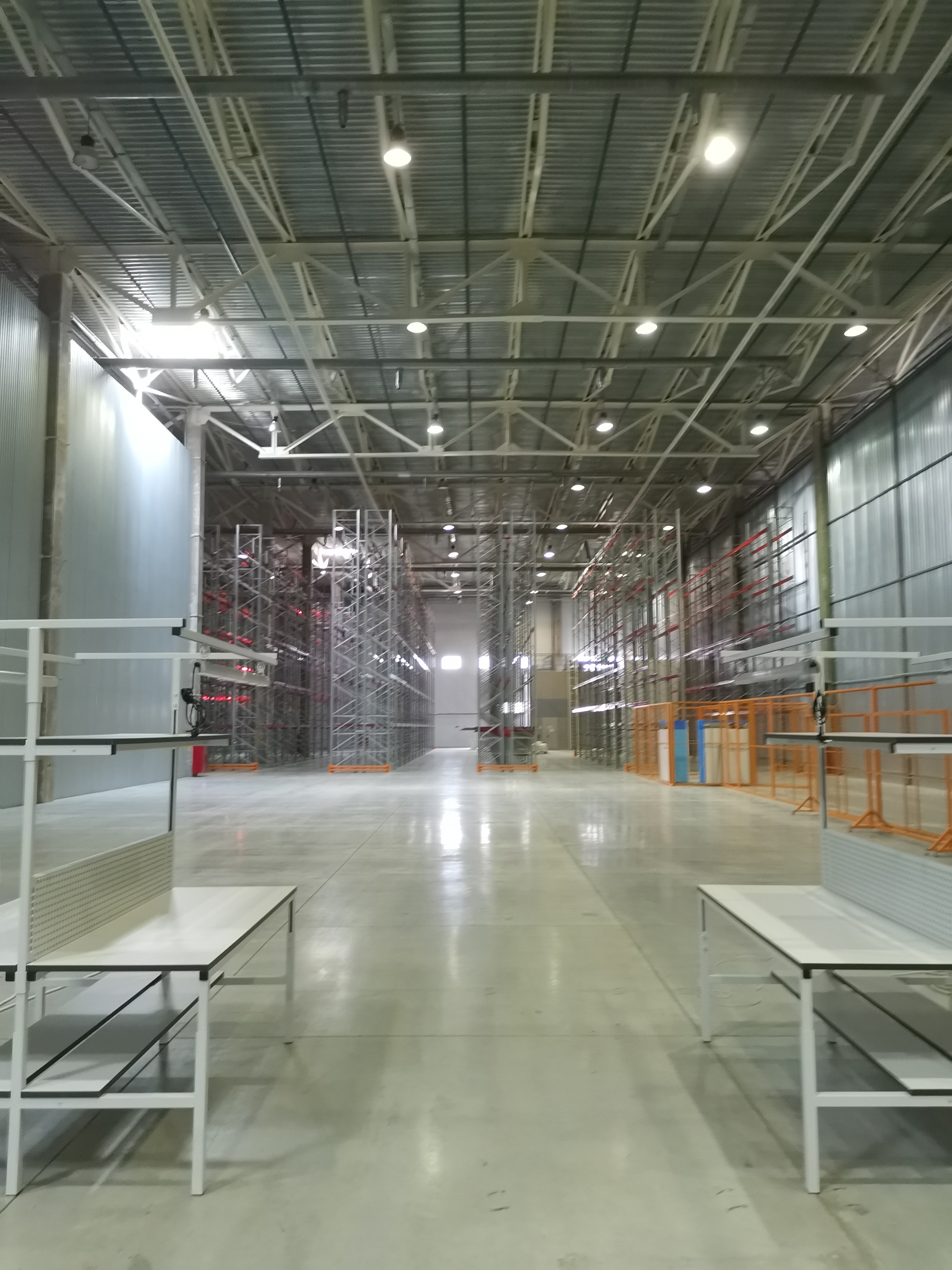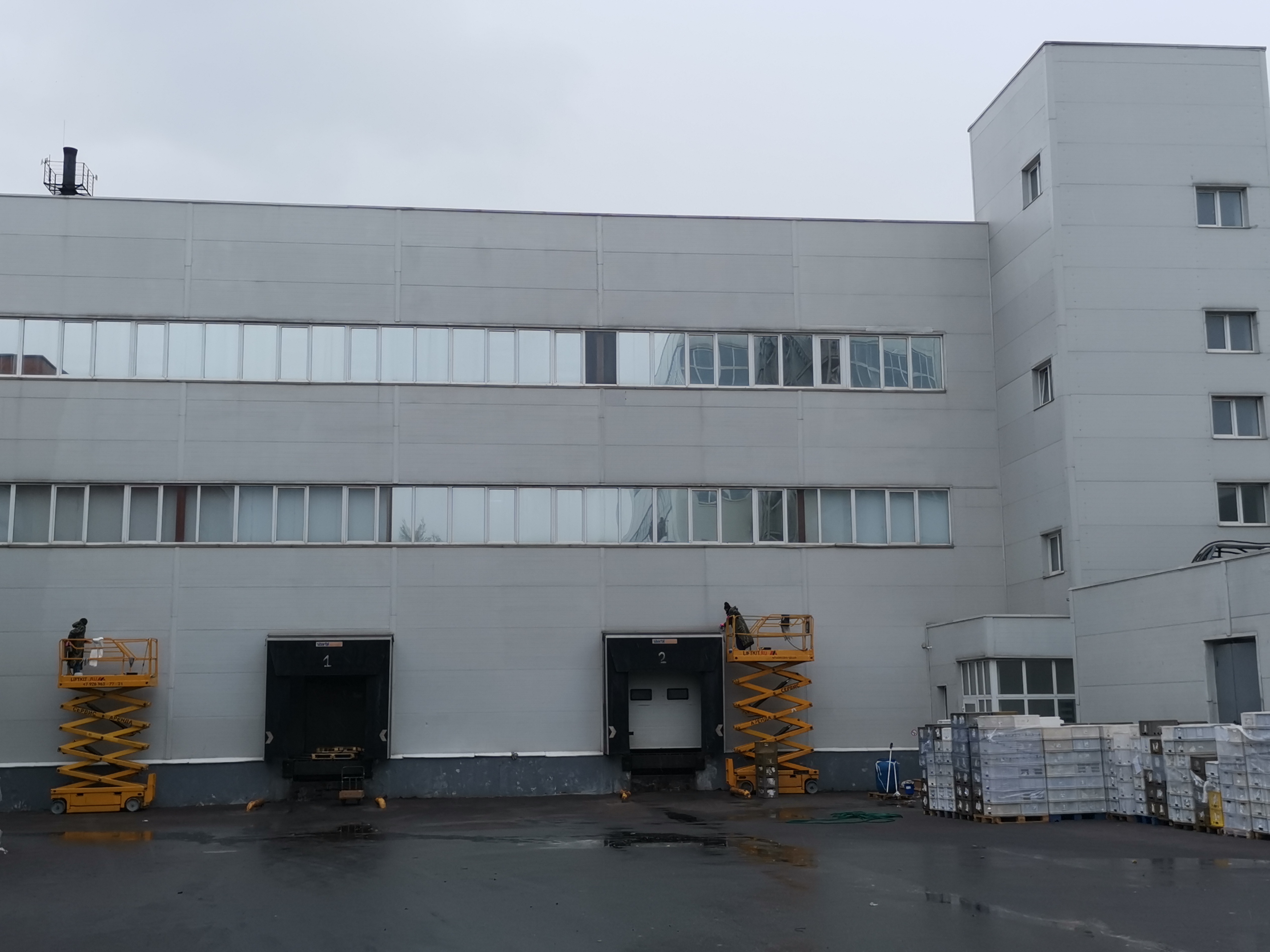 Произведена генеральная уборка производственно-складского комплекса (высота 15 м) с офисными помещениями: припотолочные металлоконструкции, инженерные коммуникации, стены, полы, холодильные камеры, оконные конструкции, удаление следов резины с поверхности пола от погрузчиков.