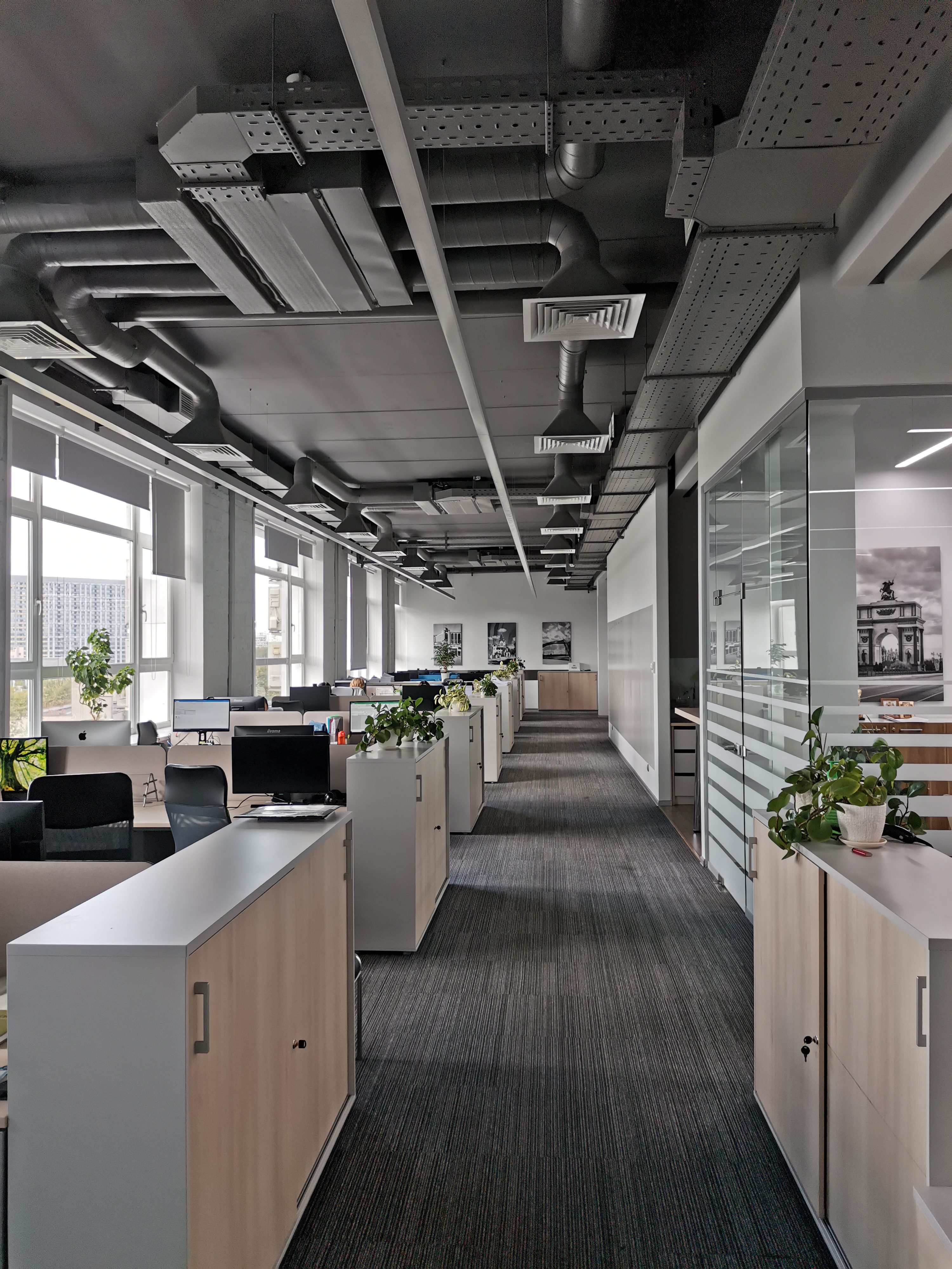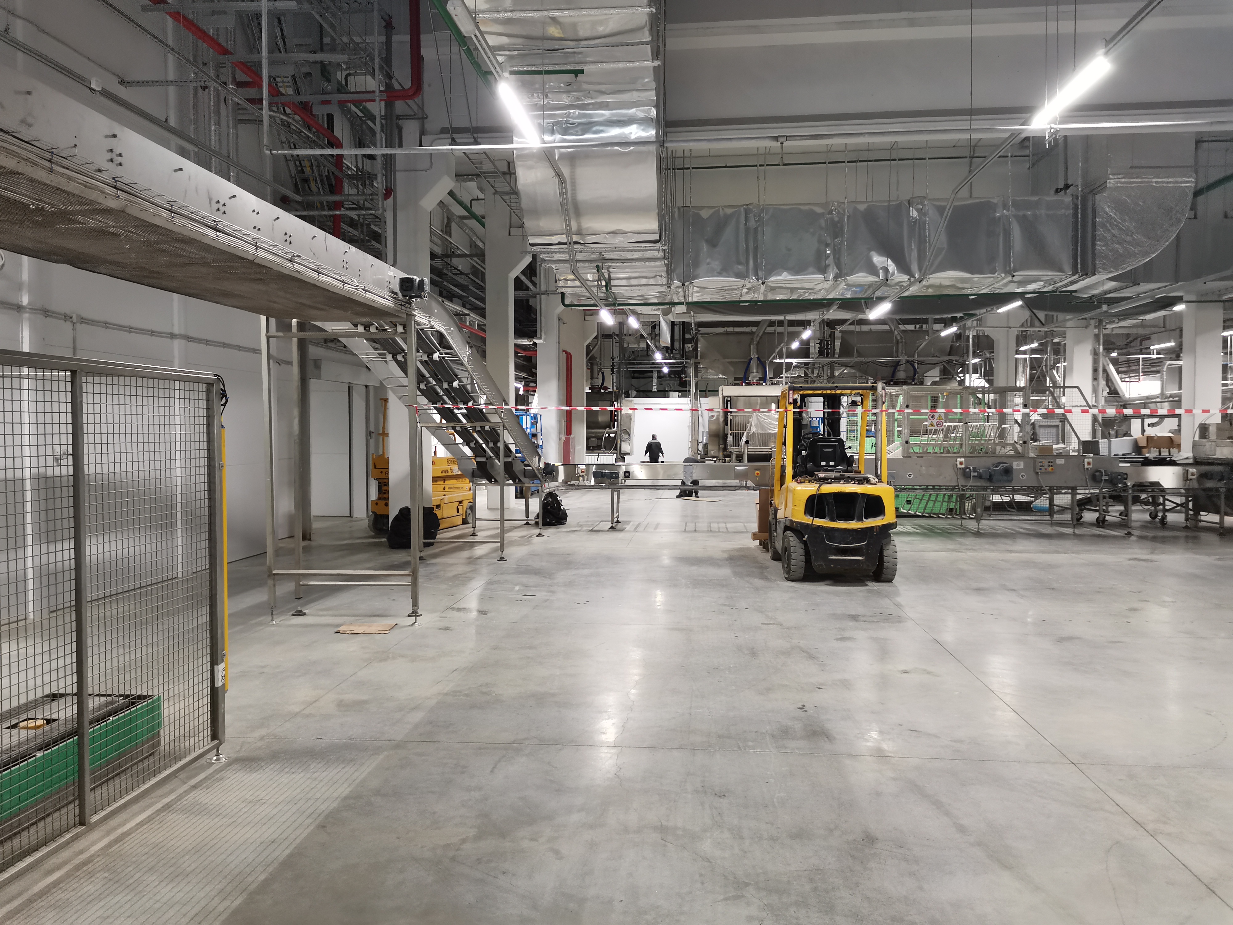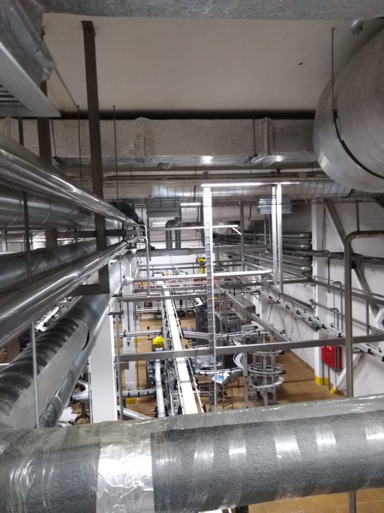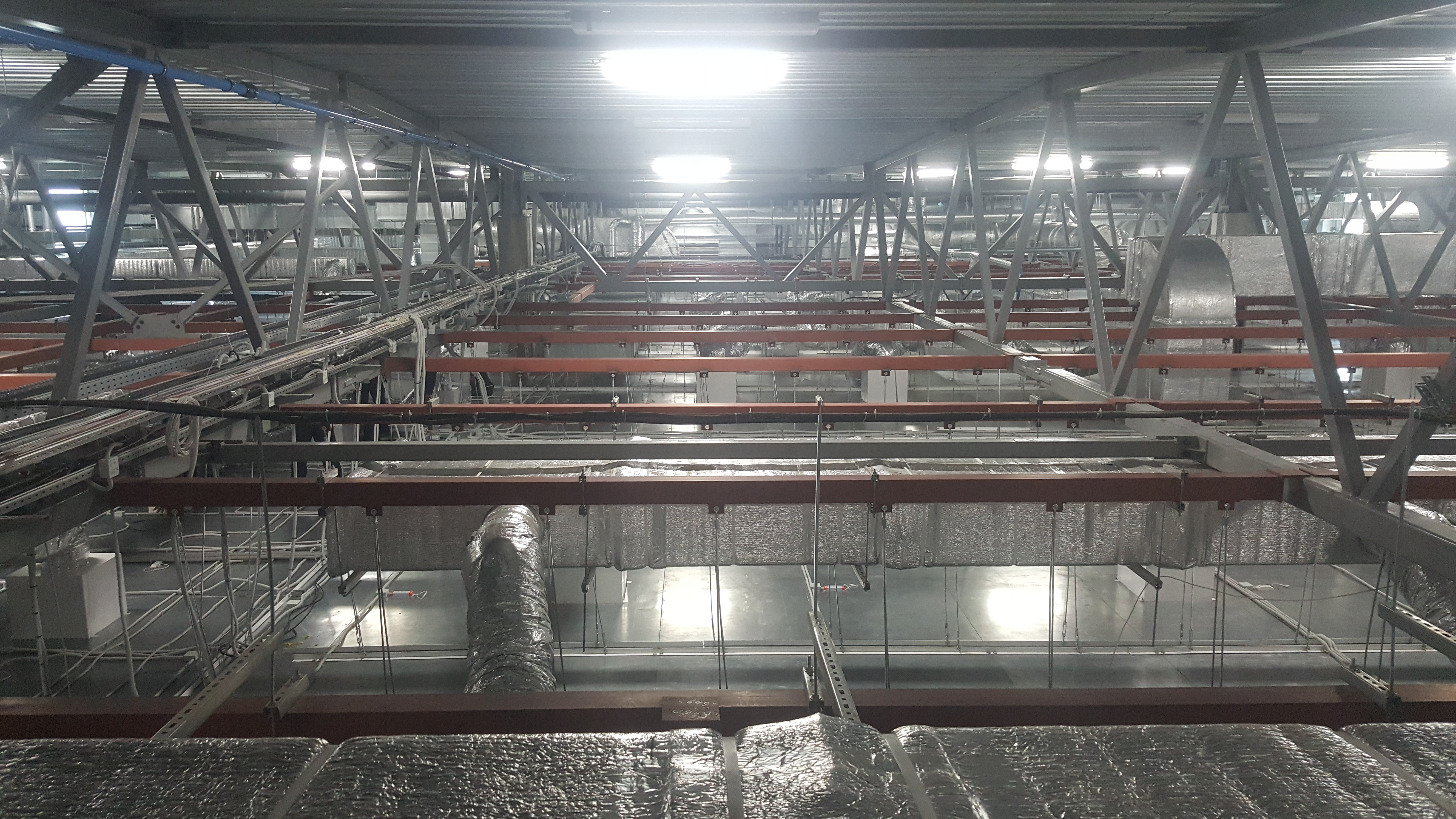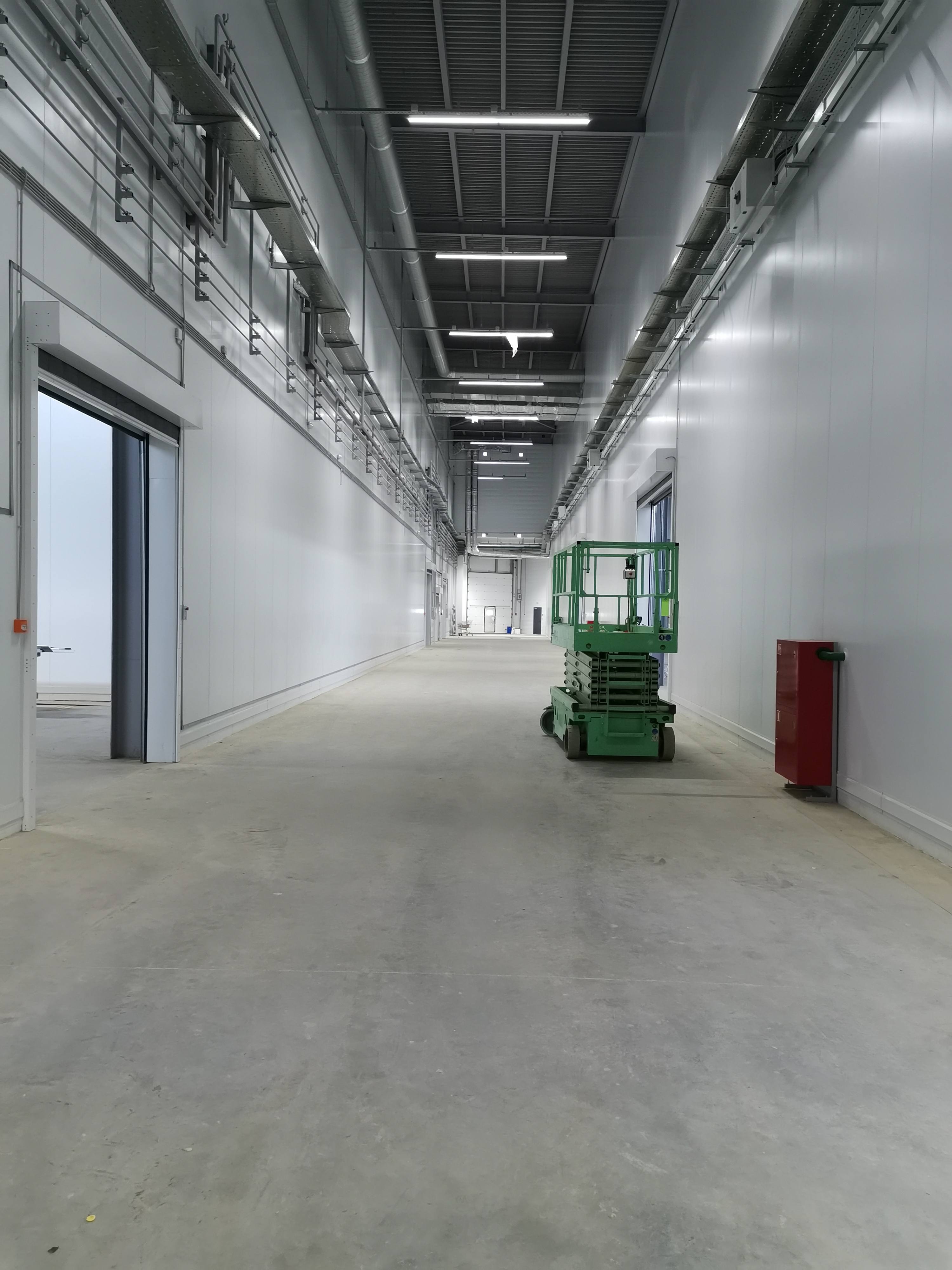 Произведена генеральная уборка производственно-складского комплекса (высота 15 м) с офисными помещениями: припотолочные металлоконструкции, инженерные коммуникации, стены, полы, холодильные камеры, оконные конструкции, удаление следов резины с поверхности пола от погрузчиков.
