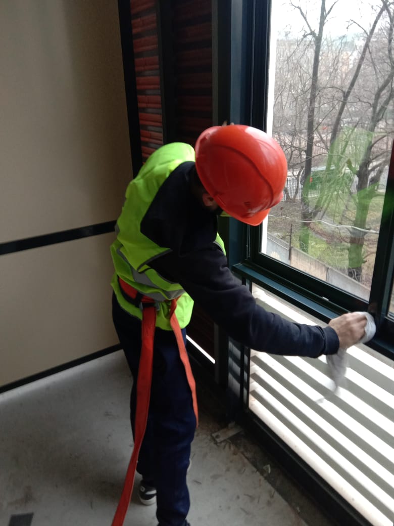 Произведена послестроительная уборка помещений МОП (коридоры, лестницы, лифтовые холлы, входные группы), подземного паркинга, прилегающей территории, мытье оконных и витражных конструкций (с 2-х сторон).