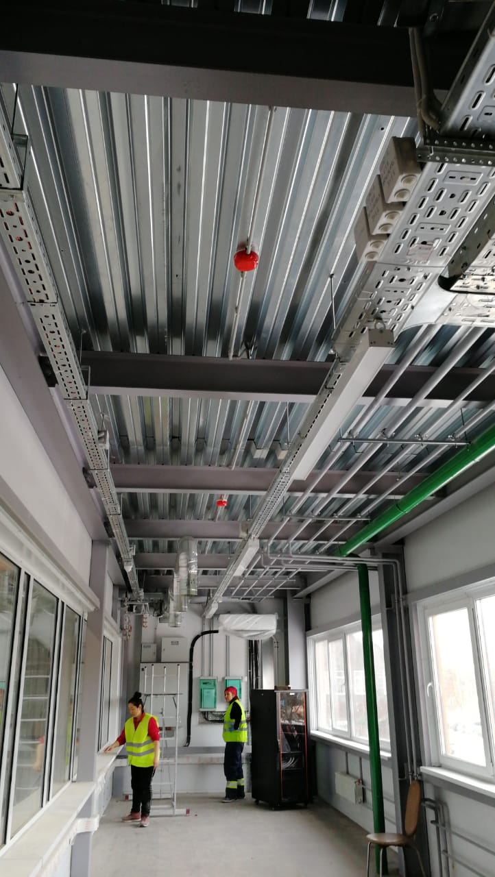 Произведена генеральная послестроительная уборка: потолки, припотолочные металлоконструкции, инженерные коммуникации, стены, полы, "чистые помещения", запотолочная зона (техэтаж), мытье фасадных и оконных конструкций.