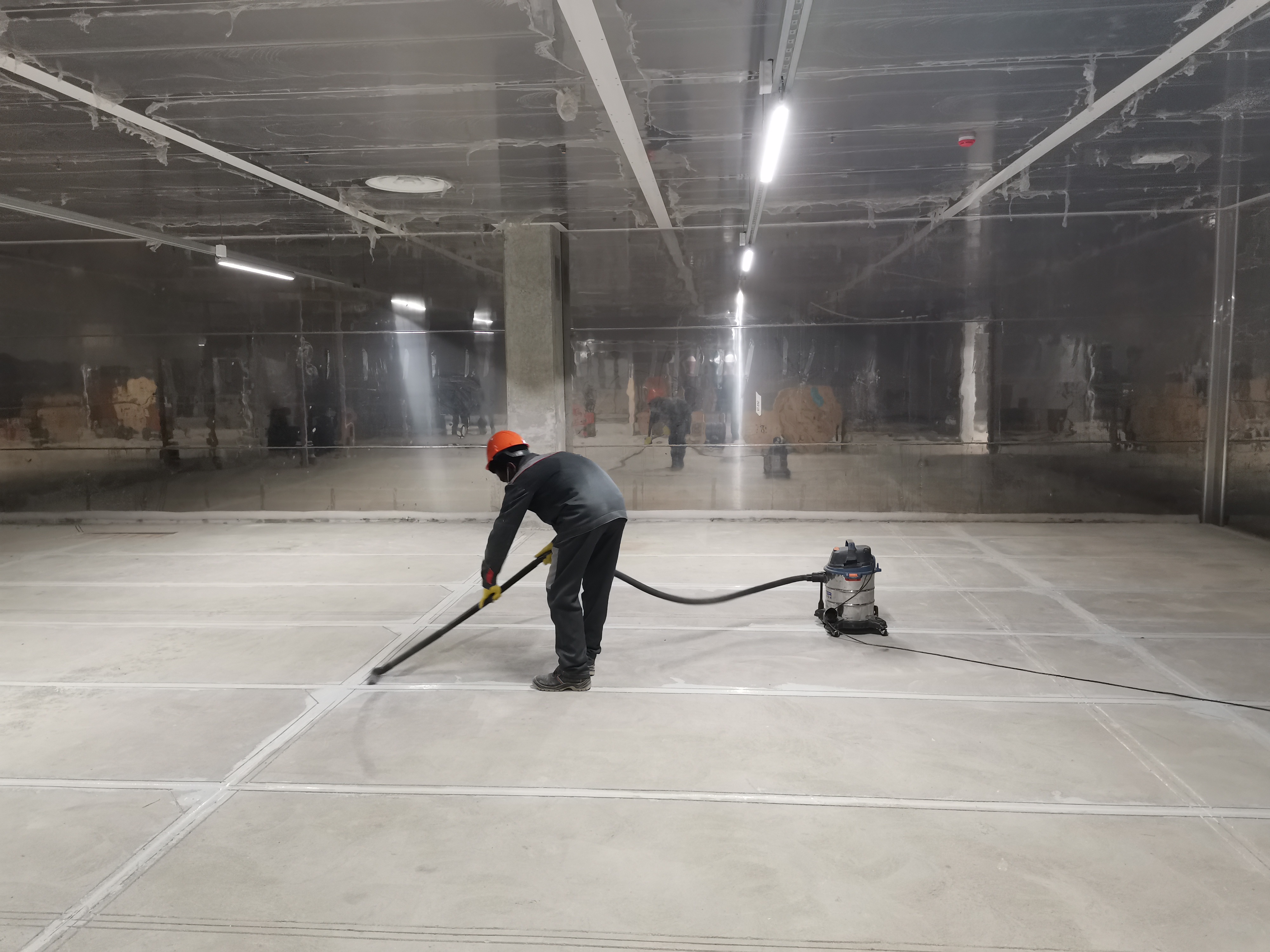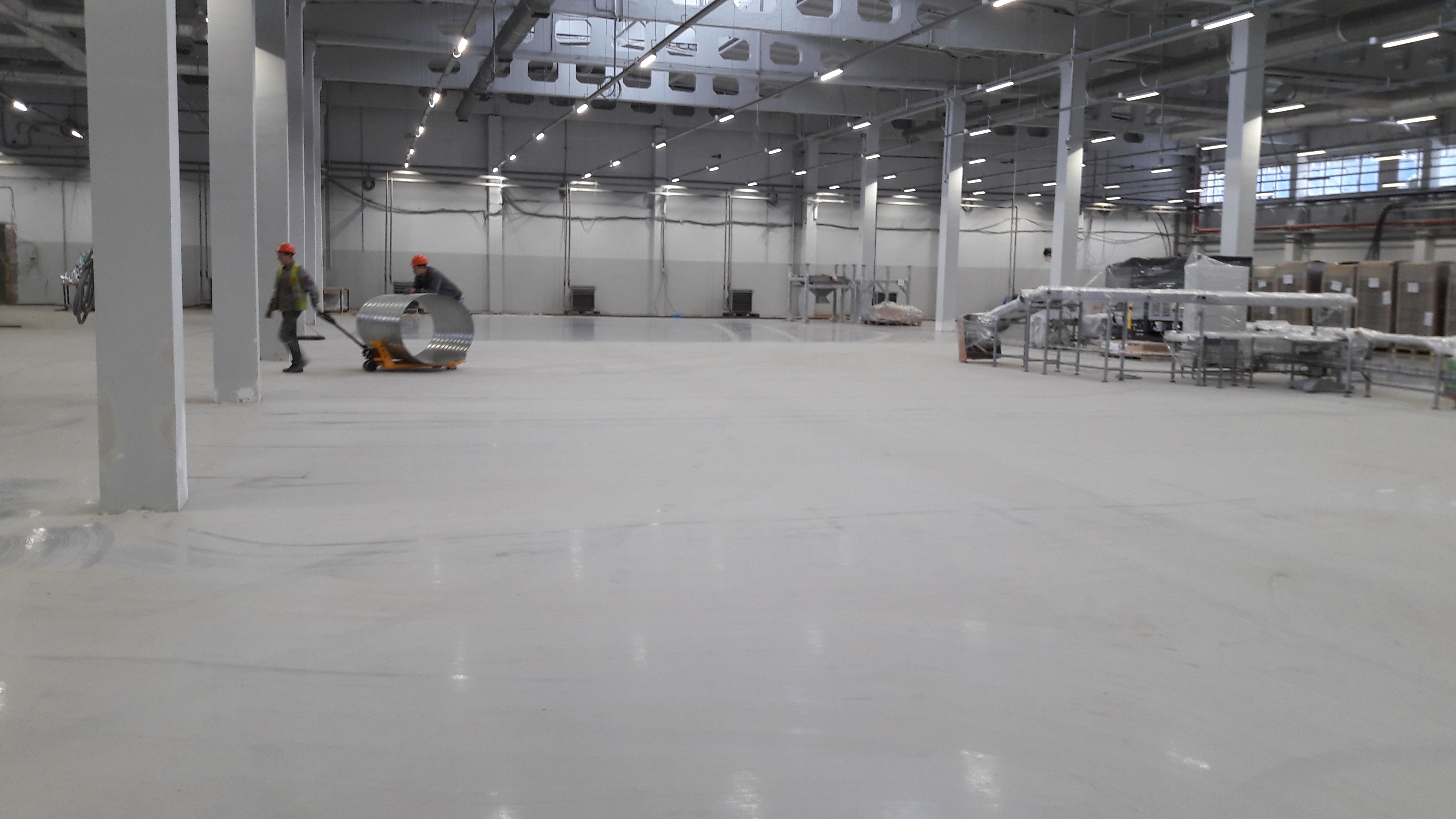 Проведено обеспыливание поверхности бетонного пола производственного помещения площадью 4 000 кв.м. в г. Москва.