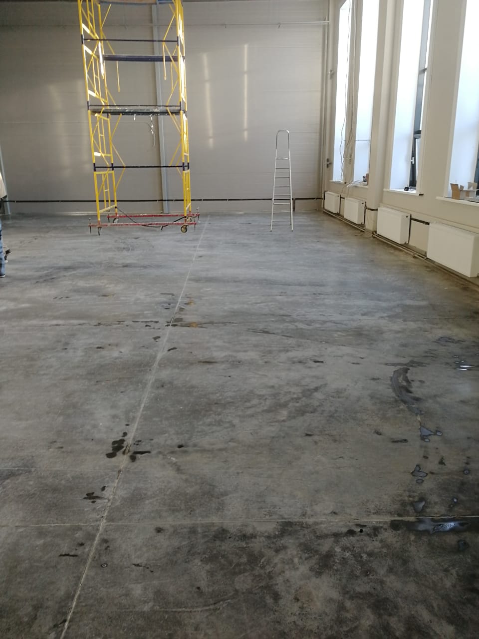 Произведена уборка поверхности бетонного пола складского помещения площадью 15 000 кв.м. в г. Пушкино.