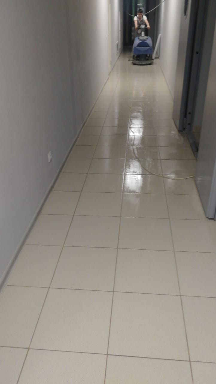 Проведено обеспыливание полов и мытье поломоечной машиной.