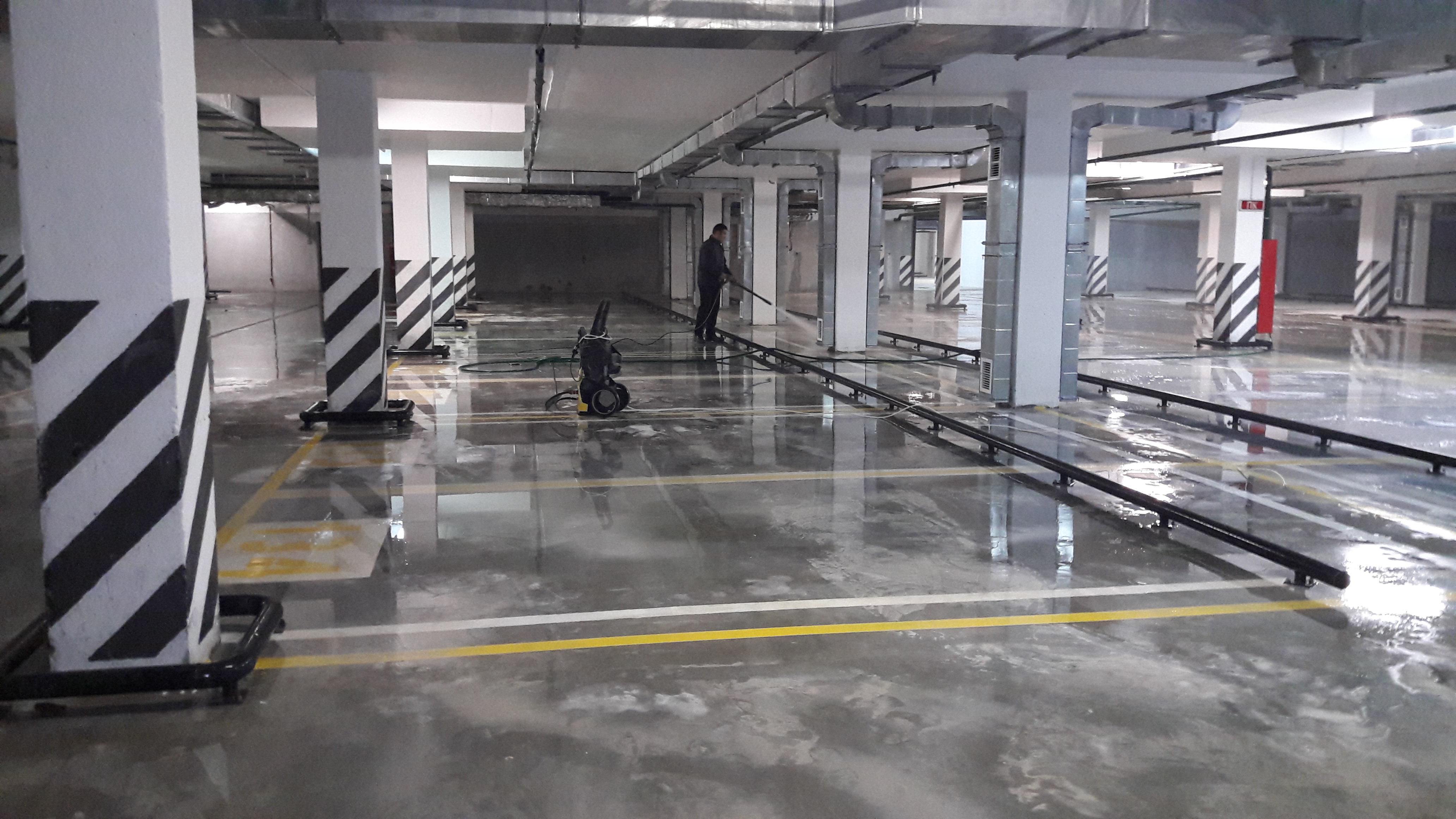 Произведена уборка подземного паркинга площадью 7 000 кв.м. в г. Видное.